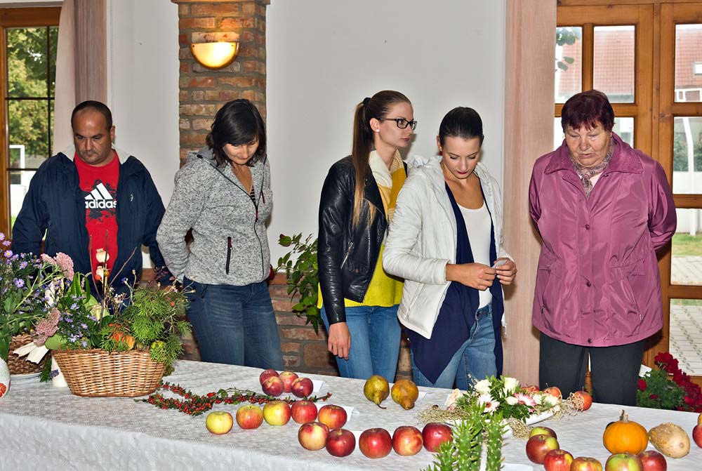 žiaci základnej školy v sprievode svojich učiteľov. Na ovocí a zelenine si pochutnali babičky a deduškovia